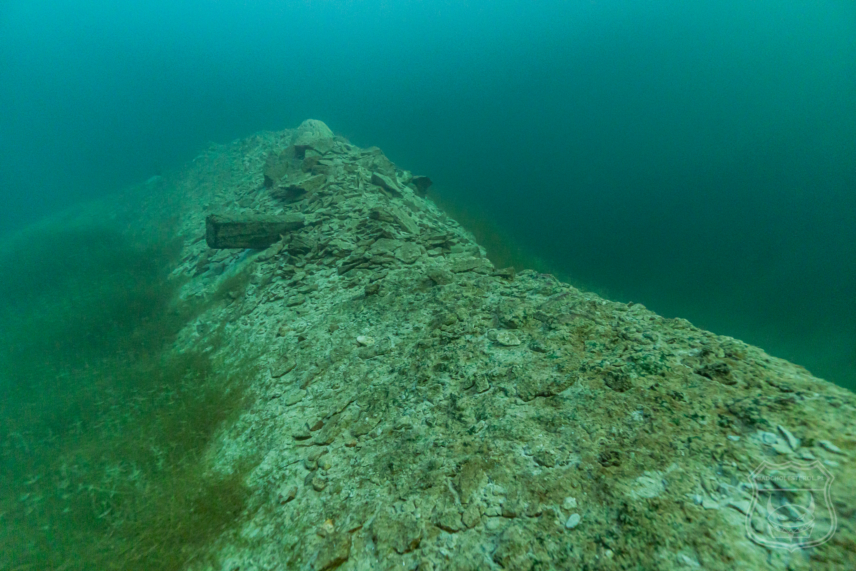Na przepłyniecie odcinka od podkładu do ruin będziecie potrzebować w zależności od tempa od 18 do 25 min płynąc na głębokości ok. 10- 12m. Odcinek od ruin do lustra zajmie jakiś 12-18 min i tu głębokość będzie się zmieniać od 10m przy ruinach do 8m przy lustrze.